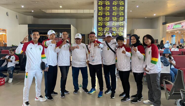 PEKANBARU-TIRASTIMES:- Sebanyak 6 atlet Sambo Riau siap tarung pada PON XXI Sumut Aceh tahun 2024 untuk membela Riau. Keberangkatan 6 atlet disampaikan langsung oleh Ketua Persatuan Sambo Indonesia (Persambi) Riau Drs Ian Machyar MM saat bersiap berangkat di ruang keberangkatan di bandara SSQ II Pekanbaru, Jumat lalu. 13 September 2024.