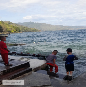 Sebelum perpisahan, kami menyeberang menuju Bukit Tara Bunga. Di atas kapal penumpang, ombak danau terasa cukup kuat, memicu sedikit kengerian di benakku. Namun, melihat peserta lain asyik berpose, kucoba menepis ragu. Di dermaga Tara Bunga, aku melihat kerumunan ikan Red Devil yang berwarna oranye mencolok di sela bebatuan. Aku sempat mendaki bukit itu sendiri, meski tak sampai ke puncak, hanya untuk mendengarkan deburan dan menyaksikan ombak yang memecah tepian. Beberapa anak kecil berdiri di tepian, sepertinya mereka tidak tahan untuk berdiam diri menyaksikan jernihnya air danau. Ya, mereka mandi. Aku ngeri melihatnya. Namun begitulah dunia anak-anak yang dulu kulalui mandi di sungai Indragiri meski predator buaya kerap melintas. Anak-anak, mana peduli.