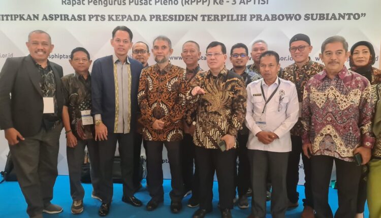 PEKANBARU-TIRASTIMES;-Jakarta: Pengurus APTISI (Assosiasi Perguruan Tinggi Swasta Indonesia) Provinsi Riau menghadiri halal bi halal dan Rapat Pengurus Pusat Pleno ke-3 bertajuk, ‘Menitipkan Aspirasi PTS Kepada Presiden Terpilih Prabowo Suianto’ di ballroom Taman Mini Indonesia Indonesia (TMII) Jakarta, Sabtu (11/05 2024).