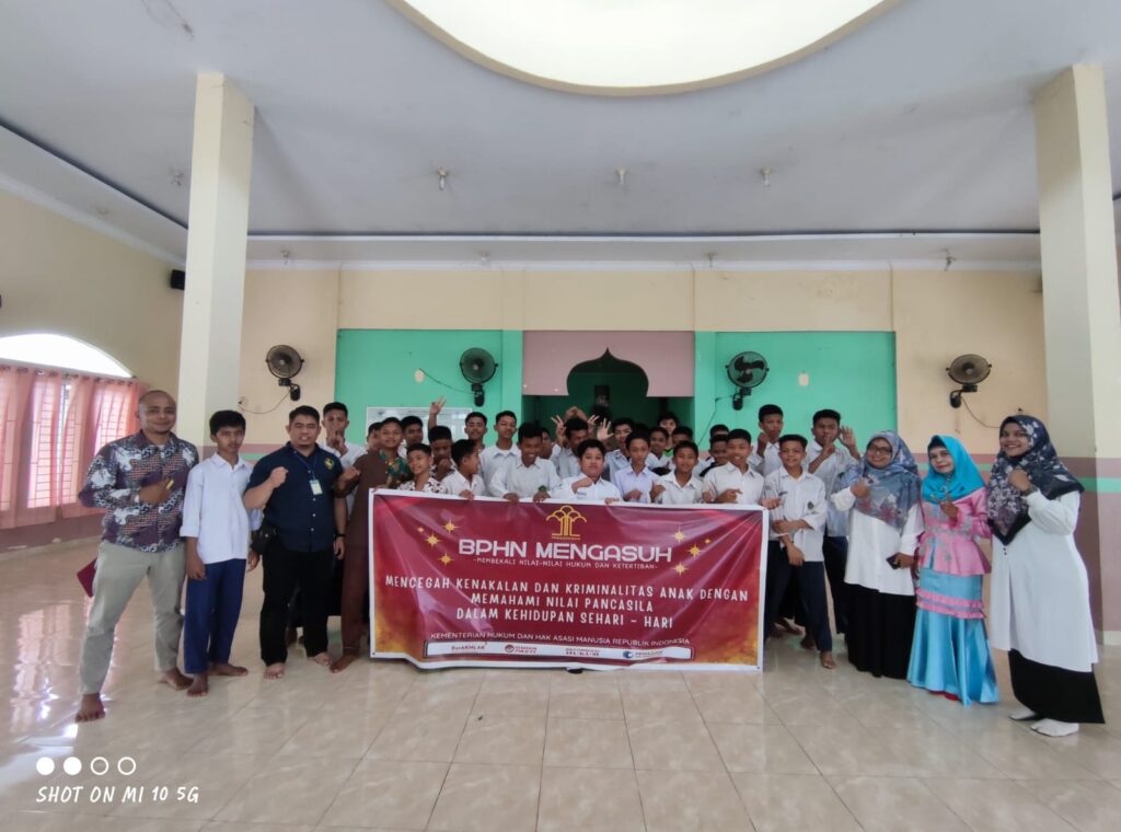 Pekanbaru-Tirastimes: – Bertempat di MTs Muhammadiyah 1 Pekanbaru, pada hari senin tanggal 20 Maret 2023, jam 10.00 wib, telah dilaksanakan Penyuluhan hukum kepada siswa dan siswi dengan tema Mencegah Kenakalan dan Kriminalisasi anak dengan memahami nilai-nilai pancasila dalam kehidupan sehari-hari.