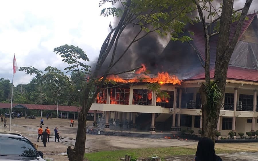 Pekanbaru-Tirastimes: – Gedung Dewan Perwakilan Rakyat Daerah (DPRD) Kabupaten Indragiri Hulu terbakar dan menghanguskan dua ruangan di lantai II pada Selasa sekitar pukul 12.30 WIB.