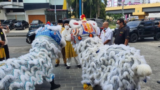 Kedatangan Gubri dan Wagubri beserta rombongan disambut atraksi Barongsai dan Barisan Bhineka Tunggal Eka, yakni barisan pasangan berpakaian adat se-Nusantara mulai dari Aceh hingga Papua. Kedua petinggi Riau ini tampak sumringah dan tak henti-hentinya tersenyum menyaksikan atraksi Barongsai yang dipersembahkan PSMTI Riau serta deretan pasangan berbusana pakaian adat senusantara yang dipersembahkan Organisasi Paguyuban yang tergabung dengan FPK Riau.