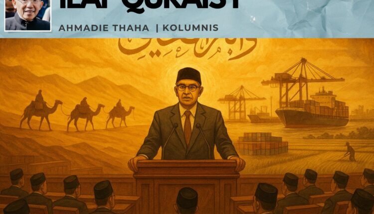 Bukankah itu bahasa Qur’ani untuk pertumbuhan dan stabilitas? Dan bukankah pemerataan tak lain adalah memastikan roti Hasyim, kakek Nabi Muhammad Saw, yang direndam kuah kambing di sepanjang perjalanan perdagangan, bisa dicicipi bukan hanya oleh elit kabilah, tapi juga kaum miskin?