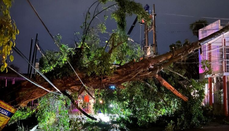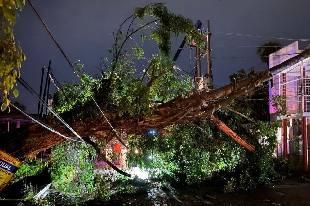 “Pohon tumbang di Jalan Taman Sari, kena kabel PLN, trafo meledak. Petugas PLN bersama petugas Dinas Pertamanan dan Pemadam Kebakaran keroyokan beresin kejadian ini,” ujar Dyas.