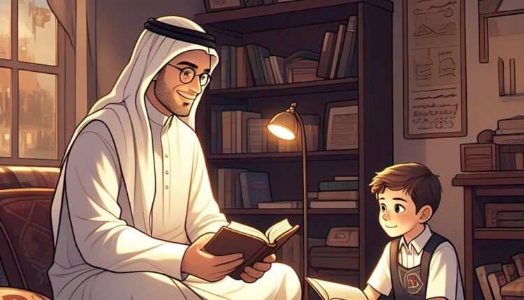 Ari membantu ayahnya untuk meletakkan Alquran dan sajadah ke tempatnya.