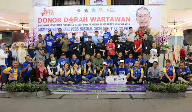 PEKANBARU-TIRASTIMES:-Persatuan Wartawan Indonesia (PWI) Provinsi Riau mengadakan kegiatan bakti sosial donor darah, sempena rangkaian kegiatan Hari Pers Nasional (HPN) dan HUT PWI ke 78. Kegiatan dilaksanakan Selasa, (30/1/2024) di Mall Pekanbaru lantai 1 dan berhasil mengumpulkan 150 kantong darah.