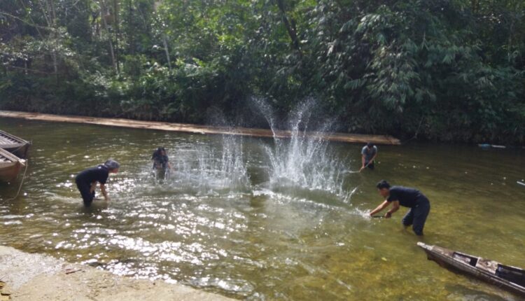 Hari itu jelang bulan puasa, kau bersama masyarakat dan para pemuda mempersiapkan peralatan. Puluhan batang buluh atau bambu, dan puluhan meter jala atau jaring mereka siapkan. Bambu tadi dipasang melintasi badan sungai. Ia disusun silang. Untuk menguatkannya bisa diikat dengan kawat dan dipaku. Setelah bambu terpasang kau tempelkan jaring untuk menahan agar ikan tidak keluar dari kawasan tangkapan.