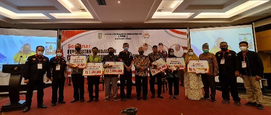 Kaban Kesbangpol Drs. Kaharuddin M.Pd, didampingi Ketua FPK Ir. AZ Fachri Yasin, M.Agr menyerahkan langsung Piagam dan Hadiah kepada para Pemenang Lomba Karya Tulis Pembauran Kebangsaan.