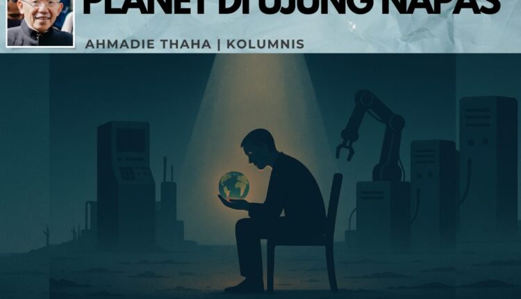 Bumi kini seperti manusia tua yang masih berusaha tersenyum meski paru-parunya penuh debu, darahnya dipenuhi plastik mikro, dan jantungnya —yang dulu berdenyut biru— kini berdetak pelan di bawah lapisan aspal.