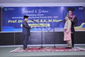 Pekanbaru-Tirastimes:-Prof Dr. Junaidi SS M.Hum resmi dilantik menjadi Rektor Universitas Lancang Kuning (Unilak) periode 2023-2027, Kamis (2/11/2023). Pelantikan Junaidi untuk periode keduanya tersebut berlangsung di aula gedung Pustaka Unilak.