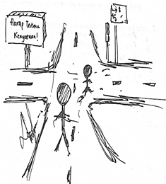 Dan orang-orang yang saling bertemu di depan pintu