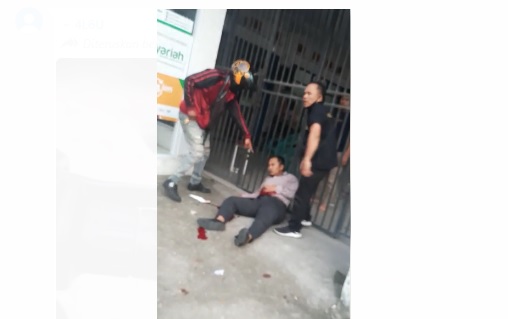 Video warga memberikan pertolongan beredar di beberapa grup telepon dan sosial media, petugas bank tersebut tampak bersandar di sebuat terali ruko, kemudian tangan kirinya menahan perut, darah tampah menempel di baju yang dikenakan. Dengan sigap salah seorang warga berbaju hitam tampak membantu menolong.
