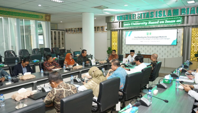 Pekanbaru-Tirastimes:-Universitas Islam Riau (UIR) menerima kunjungan Universitas Islam Indragiri (UNISI) dalam rangka studi banding sekaligus penandatanganan Memorandum Of Agreement (MoA) dan Implementation Arrangement (IA) yang dilaksanakan pada Senin (02/10/2023) di Ruang Sidang Lt II Gedung Rektorat UIR.