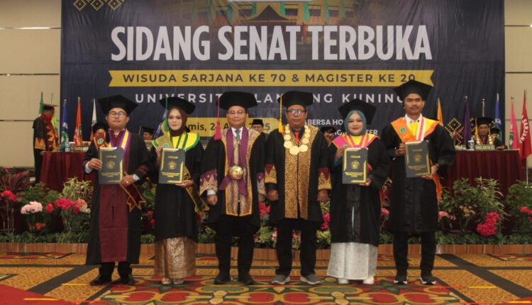 TIRASTIMES – PEKANBARU – Universitas Lancang Kuning (Unilak) kembali menggelar Sidang Senat Terbuka Wisuda Sarjana ke-70 dan Magister ke-20, Kamis (24/4/2025). Acara yang berlangsung di Labersa Hotel and Convention Center ini menjadi tonggak bersejarah bagi 895 mahasiswa yang resmi menyandang gelar sarjana dan magister.