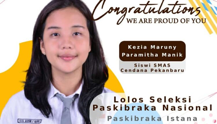 Salah satu siswa terbaik SMA Cendana Pekanbaru, Keiza Maruny Paramitha lolos ke Istana Negara sebagai Calon Pasukan Pengibar Bendera Pusaka. Keberhasilan ini setelah melalui proses panjang dalam seleksi yang sangat ketat. Mulai dari seleksi tingkat sekolah, kabupaten, dan provinsi yang berlangsung sejak Februari 2023 hingga 29 Mei 2023.